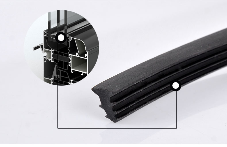2、室內(nèi)膠條:安裝于扇料上。這款膠條推薦選用非封閉口型的膠條,壓縮量2~3mm,膠條壁厚1~1.3mm為宜